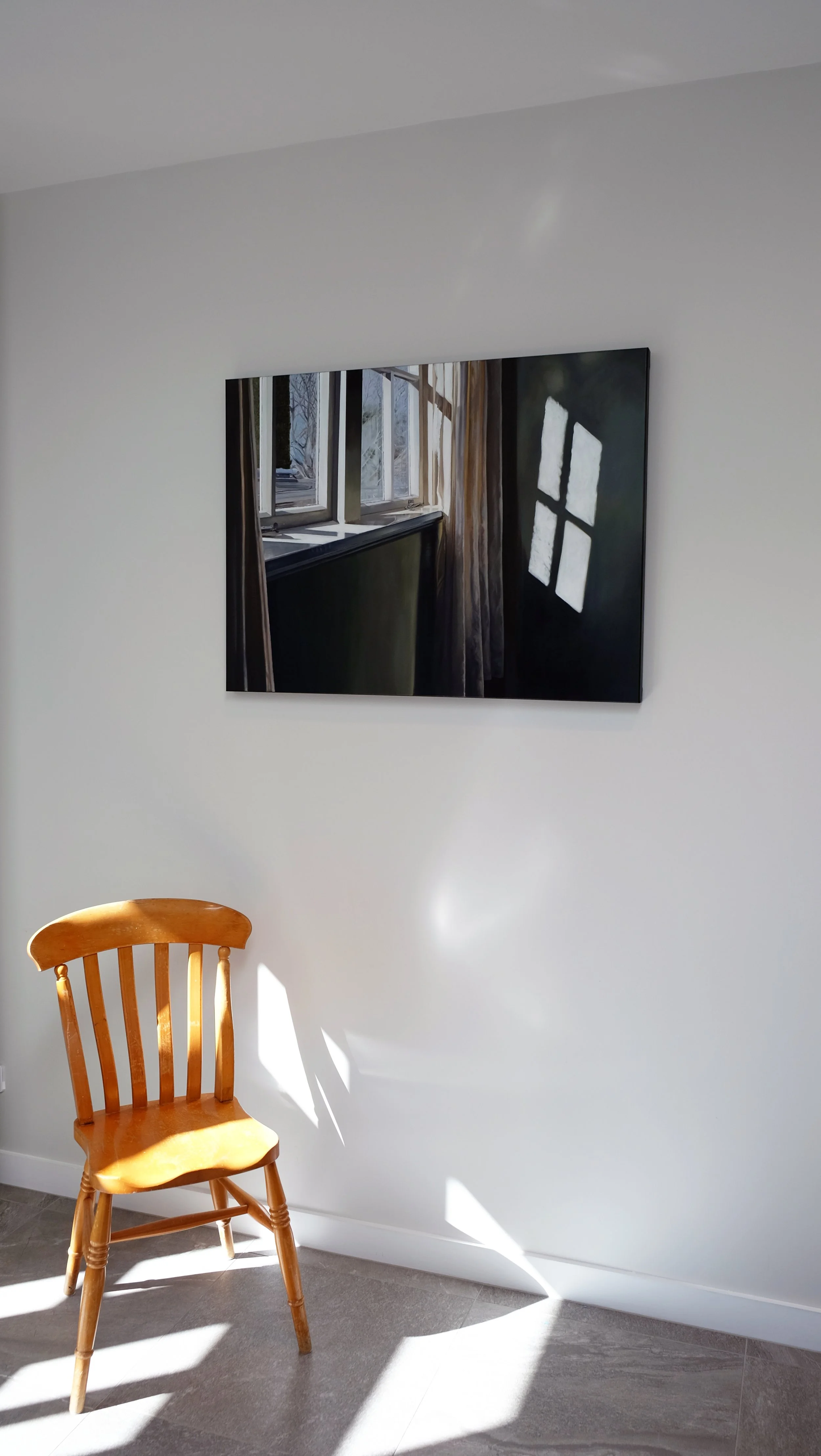My current work centres around capturing and freezing a moment in time. Sometimes it is something from the present, like crayons left on my window sill. Other times I revisit the past, through memories of other spaces important to me or via photos of children who previously lived in our house. A sense of nostalgia imbues pieces, inviting viewers in and allowing them to soak in peaceful interiors. Quiet, secluded views to the outside world allow us to dream beside a window, surrounded by serene spaces filled with soft, muted tones and delicate details. In the silence of the spaces presented, contemplation turns to what hints of human presence remain in quiet, empty rooms? What passing moments can never be experienced again?